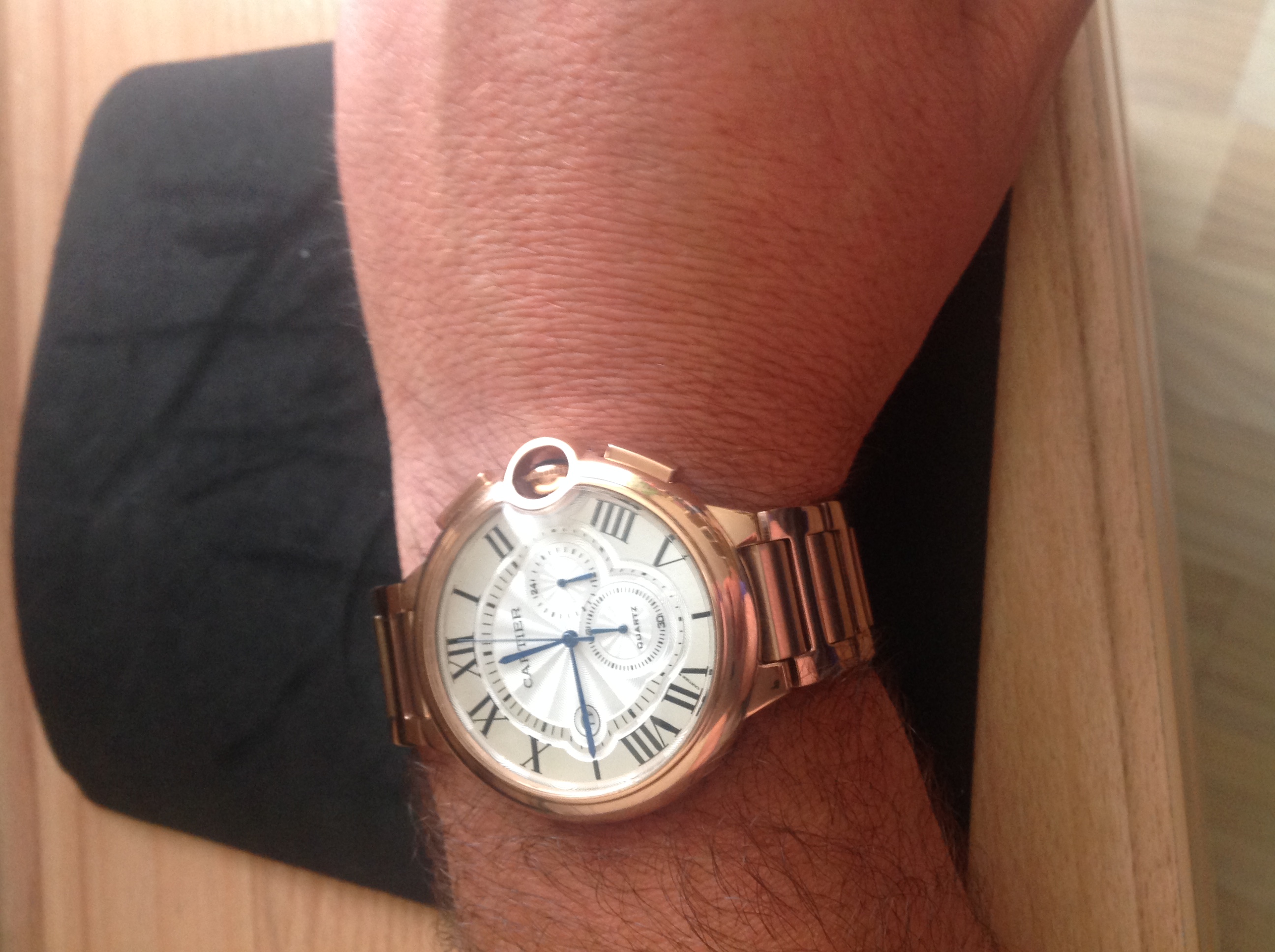 «Купил часы Cartier артикул 40.Часы неплохие покрытие позолоты при визуальном осмотре хорошее при носке время покажет ,все работает отлично но при регулировки длины браслета на одном звене обнаружил ,что болт на звене не закручен а просто вставлен при нажатии на него с другой стороны он просто выпал резьба болта не совпадает с диаметром отверстия пришлось закрепить его на супер клей.Но одного я не понимаю почему работники сайта утверждают ,что часы произведены в Бельгии ведь все уже давно понимают ,что все копии и подделки часов и многих других товаров производят в Китае и мои часы не исключение,но только качество разное, качество приобретённых на этом сайте часов за эти деньги меня устраивает все нормально.»